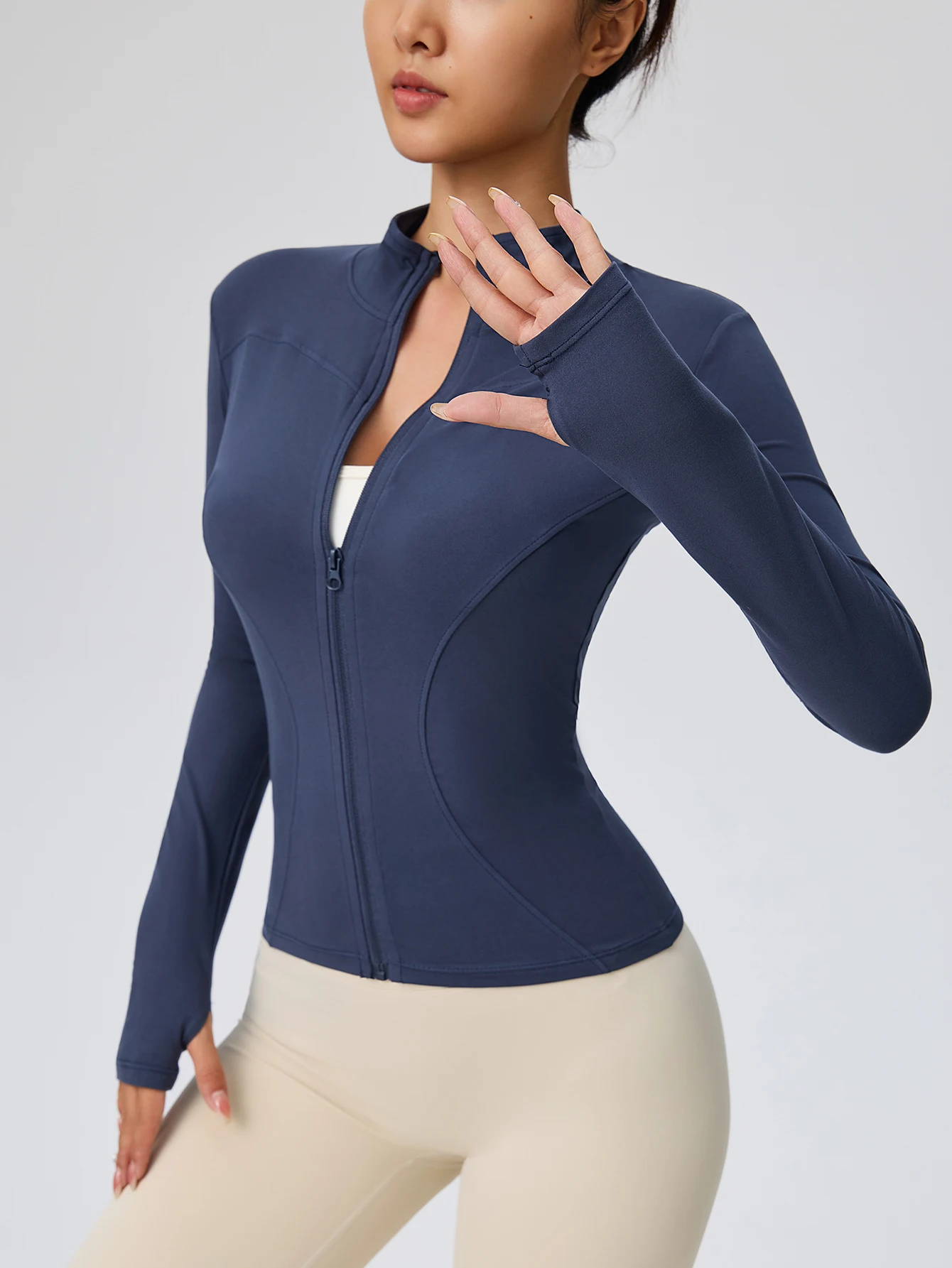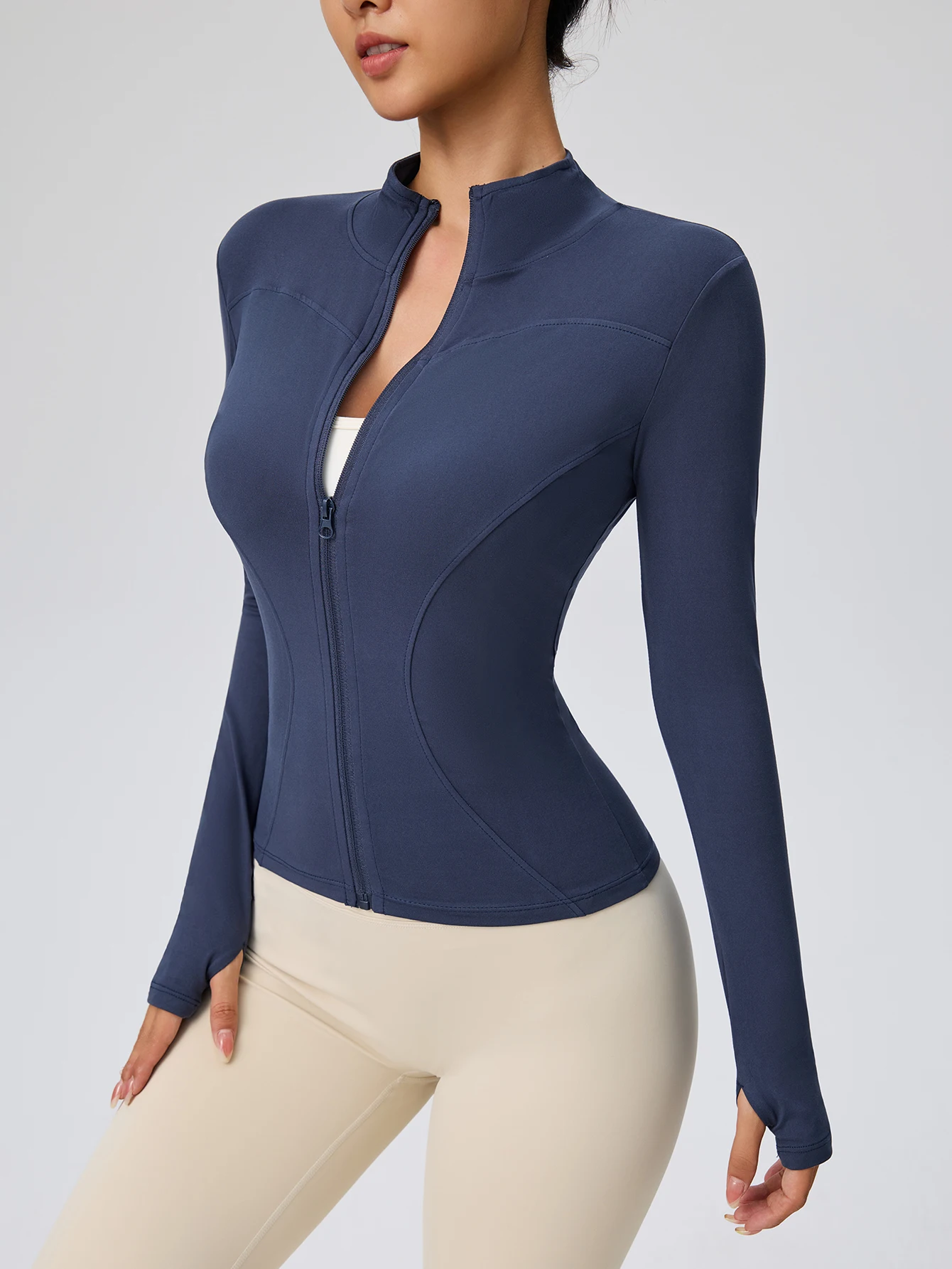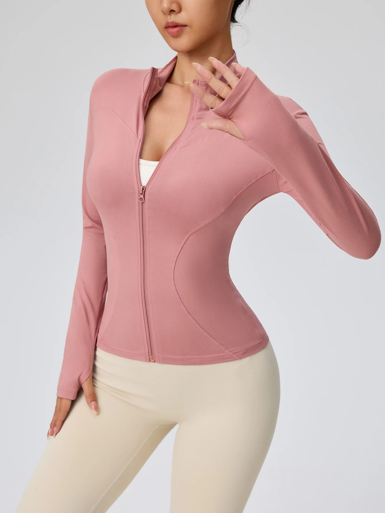 * Design Funcional: Gola alta para maior proteção e acabamento de punho com encaixe para o polegar, garantindo que as mangas fiquem no lugar durante a corrida ou yoga.